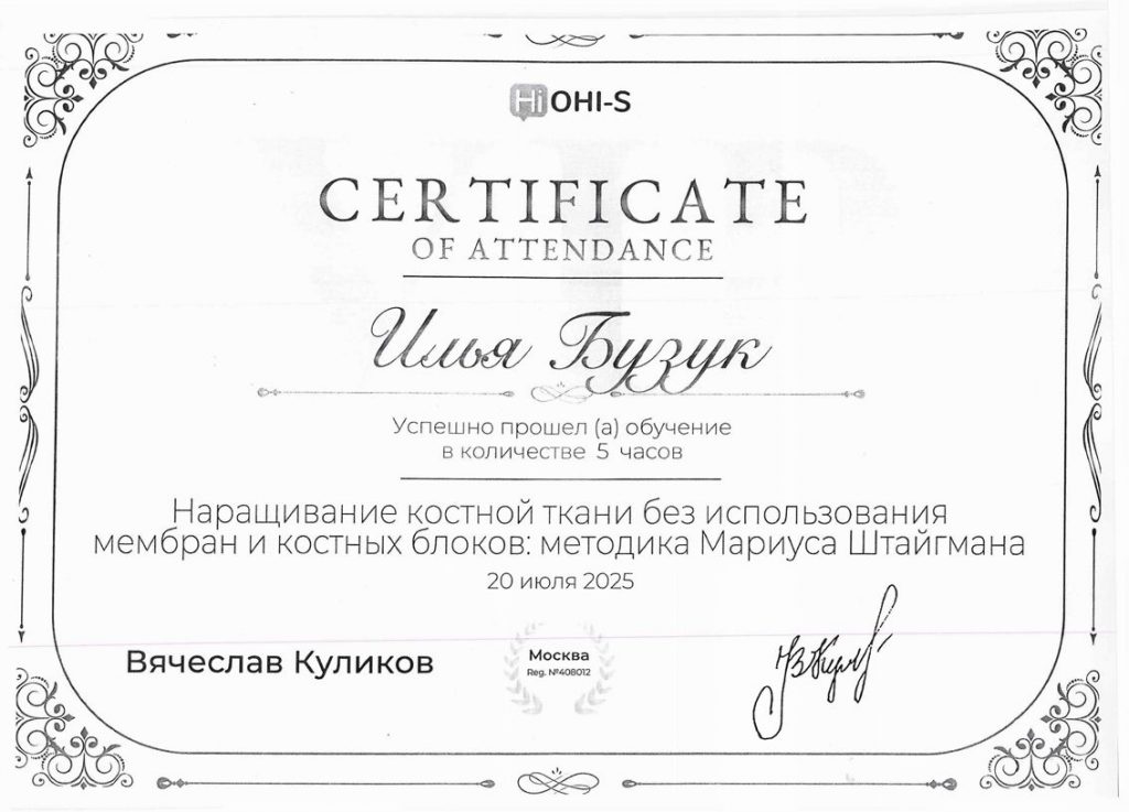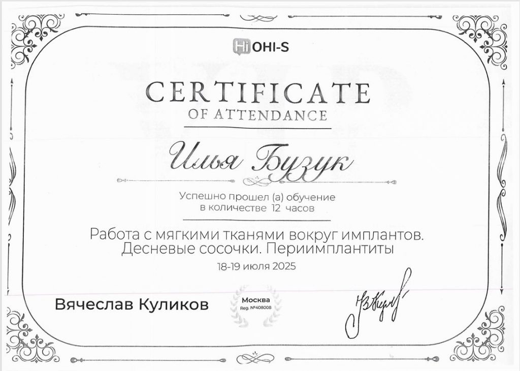 Врач стоматолог-хирург с колоссальным опытом в области имплантации и костно-пластических операций. Постоянно повышает свой профессиональный уровень на стажировках и конференциях Израиля, Голландии, России, Испании, Литвы, Эстонии и др. Работает с системами дентальной имплантации MIS (Израиль) и Straumann (Швейцария). Пациенты отмечают, что с первой встречи врач вызывает полное доверие, внушает уверенность за результат и говорят — у него «золотые руки».